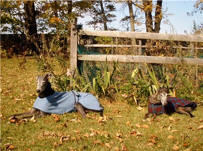 Our rescued greyhounds "Wallace" and "Baby" relaxing in our backyard